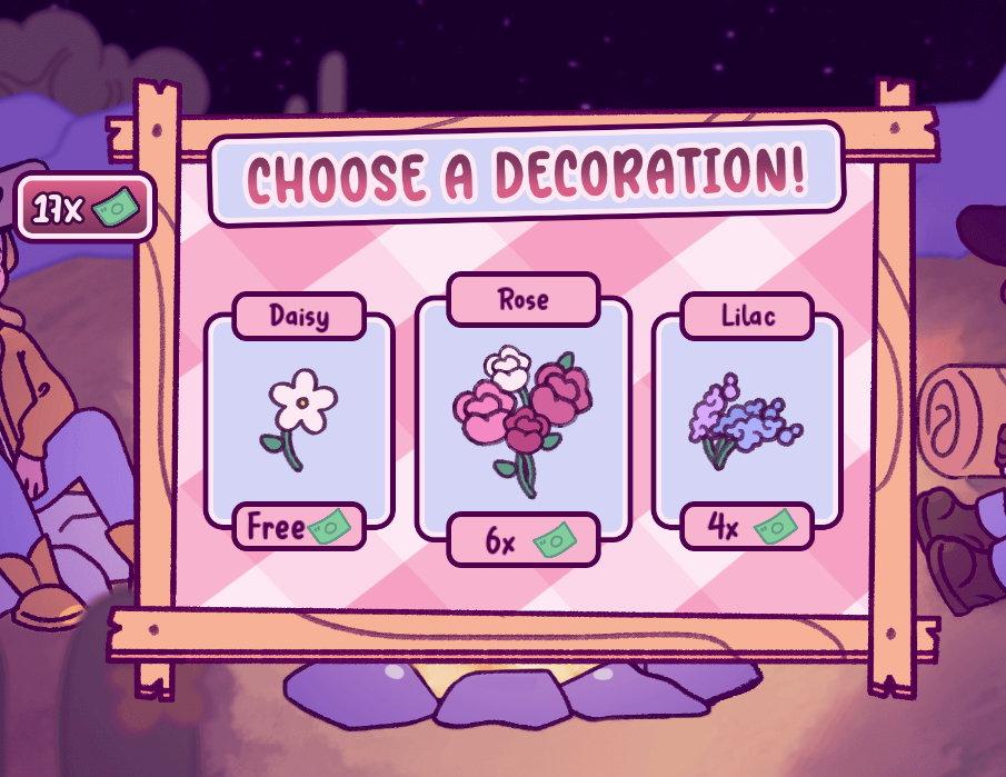 The first day in the game worked like a tutorial, and even if players performed poorly there was always a free option on the end of the first day to avoid early frustration. The meta game gave players agency by letting them finish the wedding with different decorations and personalized endings, tied to their choices in the shop.